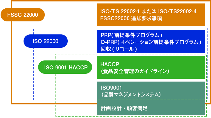 とは - 食品製造業界(食品製造事業者のみならず食品包装材製造事業者も含む)に向けた食品安全マネジメントシステムです。弊社では、FSSC22000に則ったフードディフェンス等を盛り込んだ衛生管理を基準として、3つの危害(生物的・科学的・物理的)による驚異から製品を守るために、社内の製造体制の改善に取り組んでいます